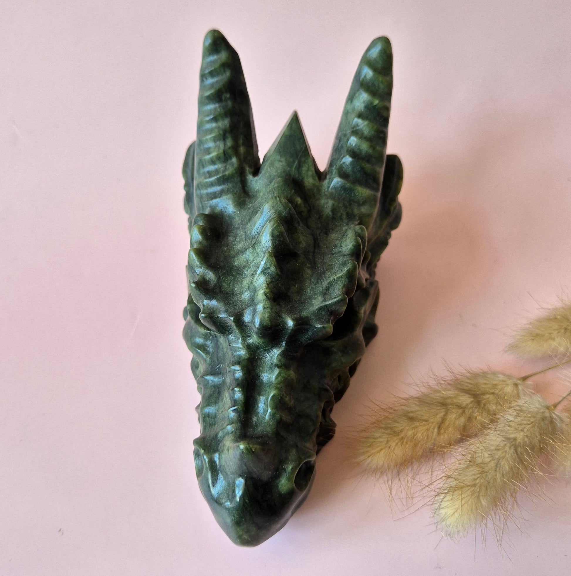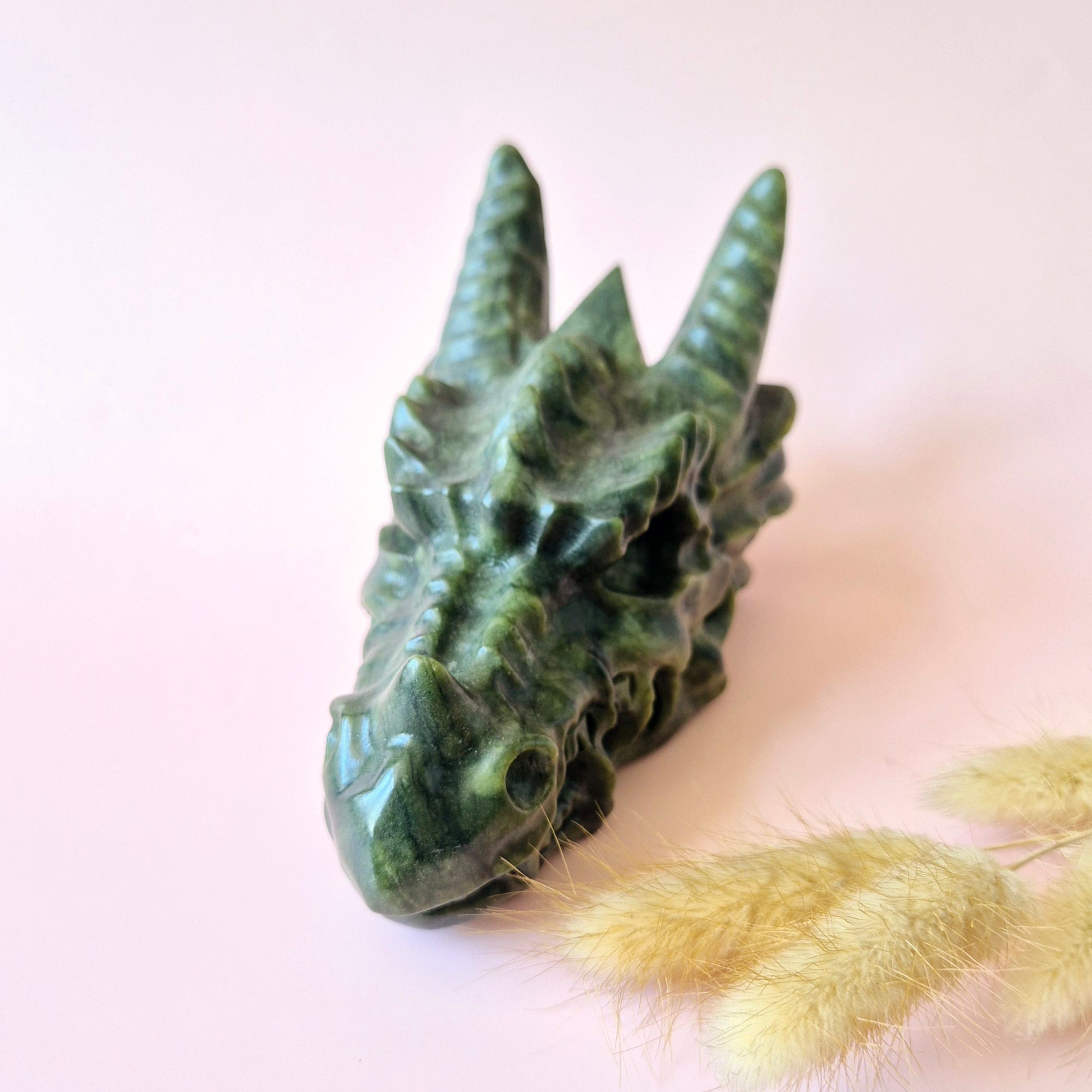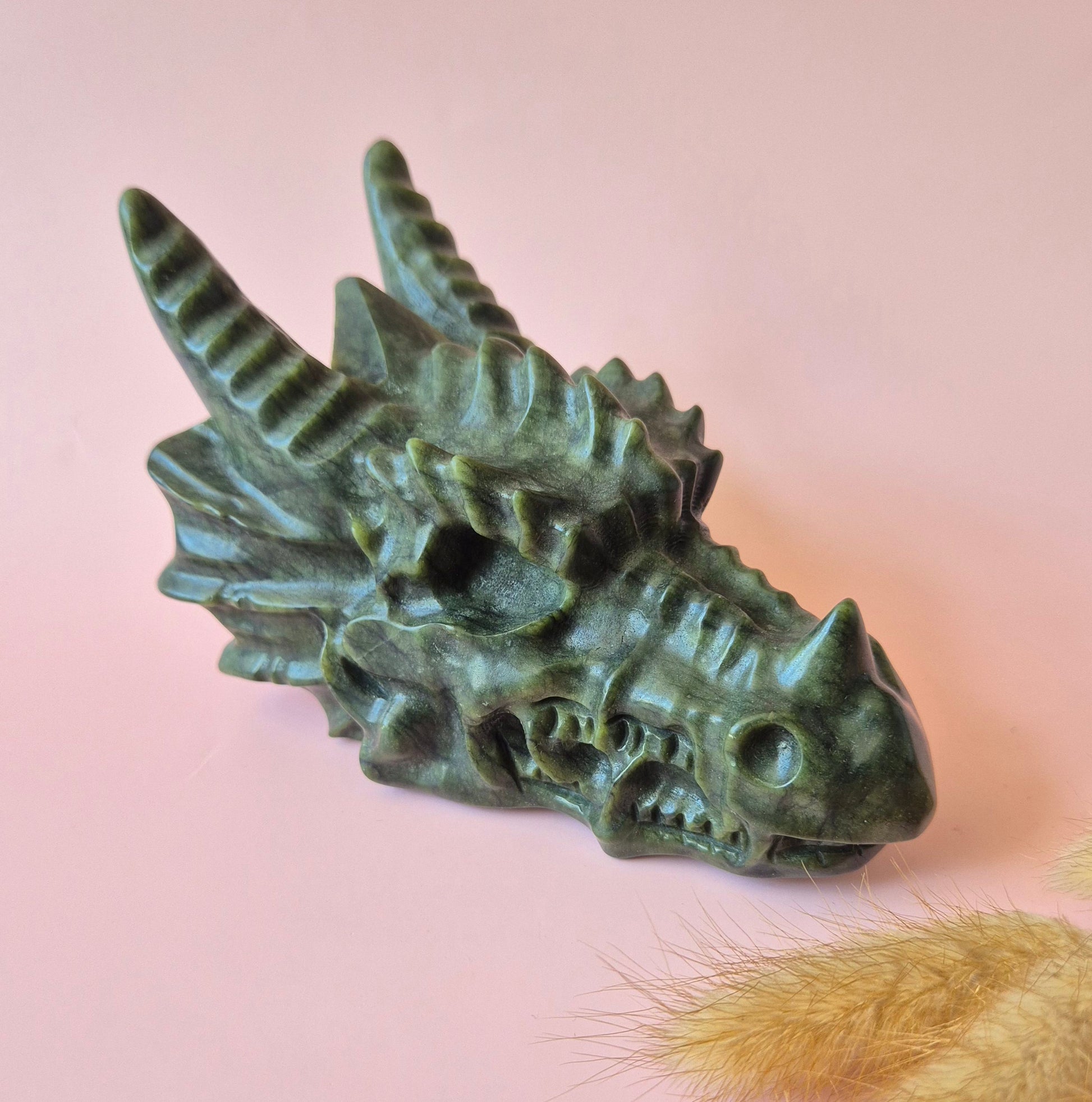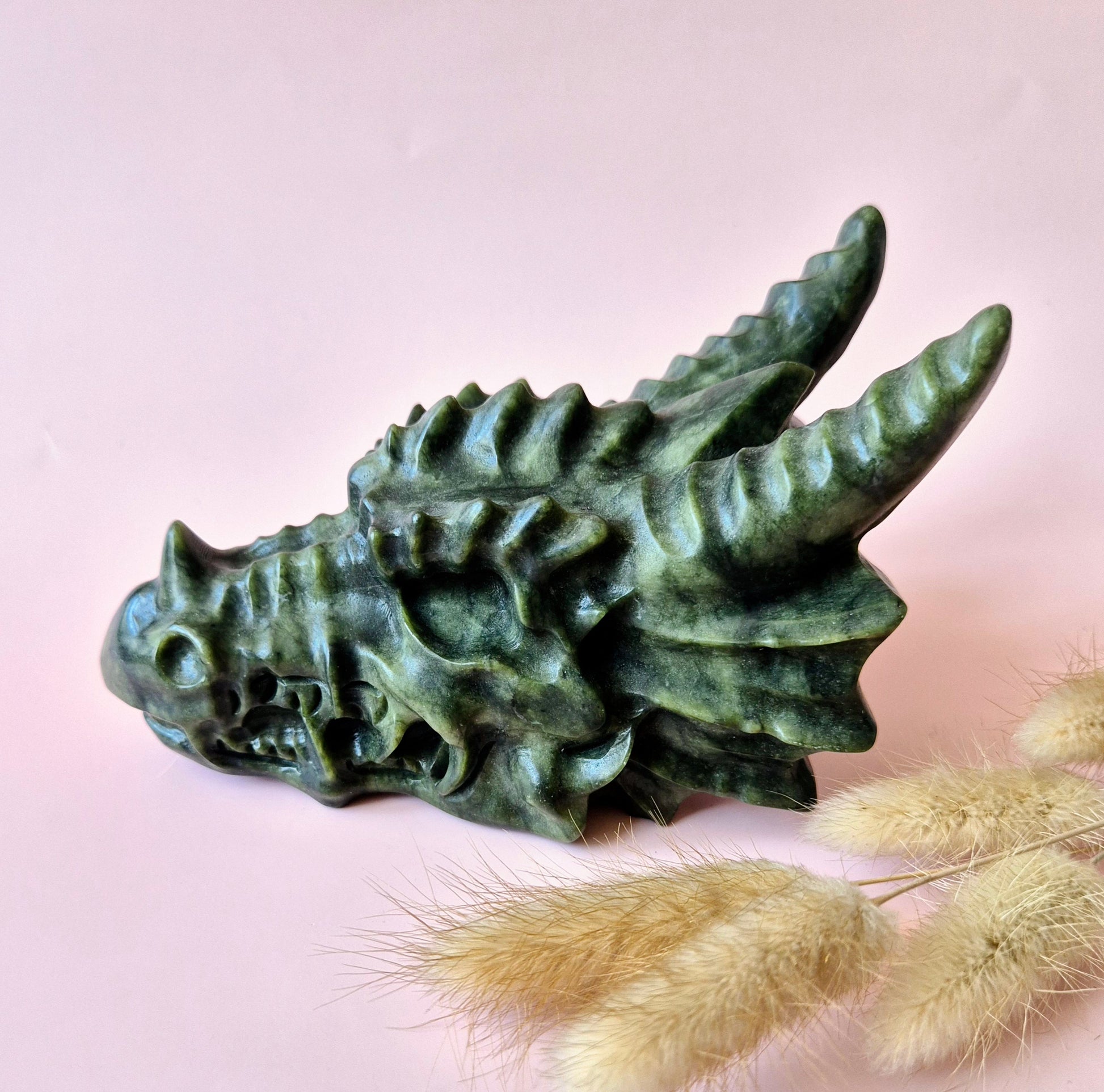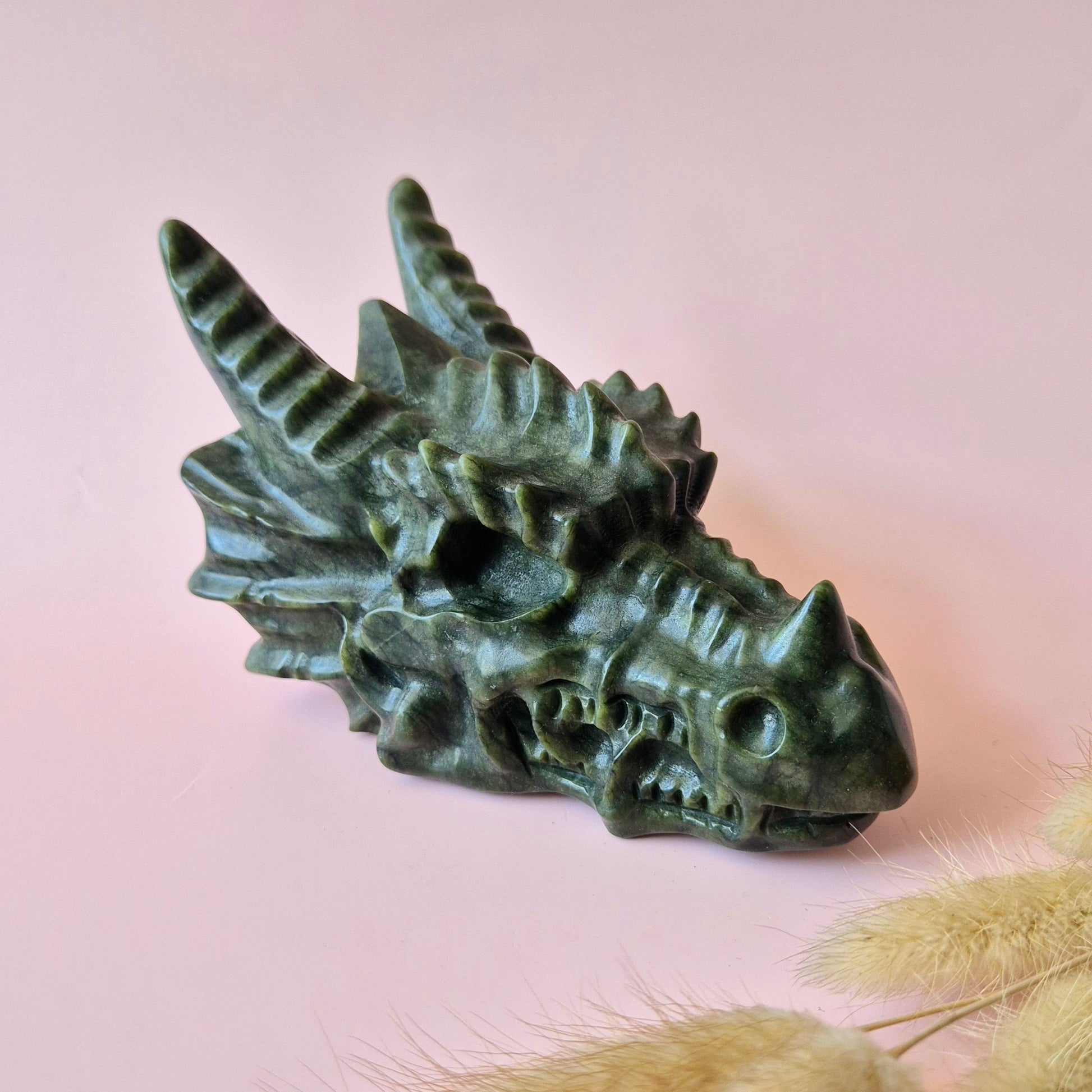 XL Edelsteen Groene Jade Draken Schedel – 700g (Dragon Skull)
