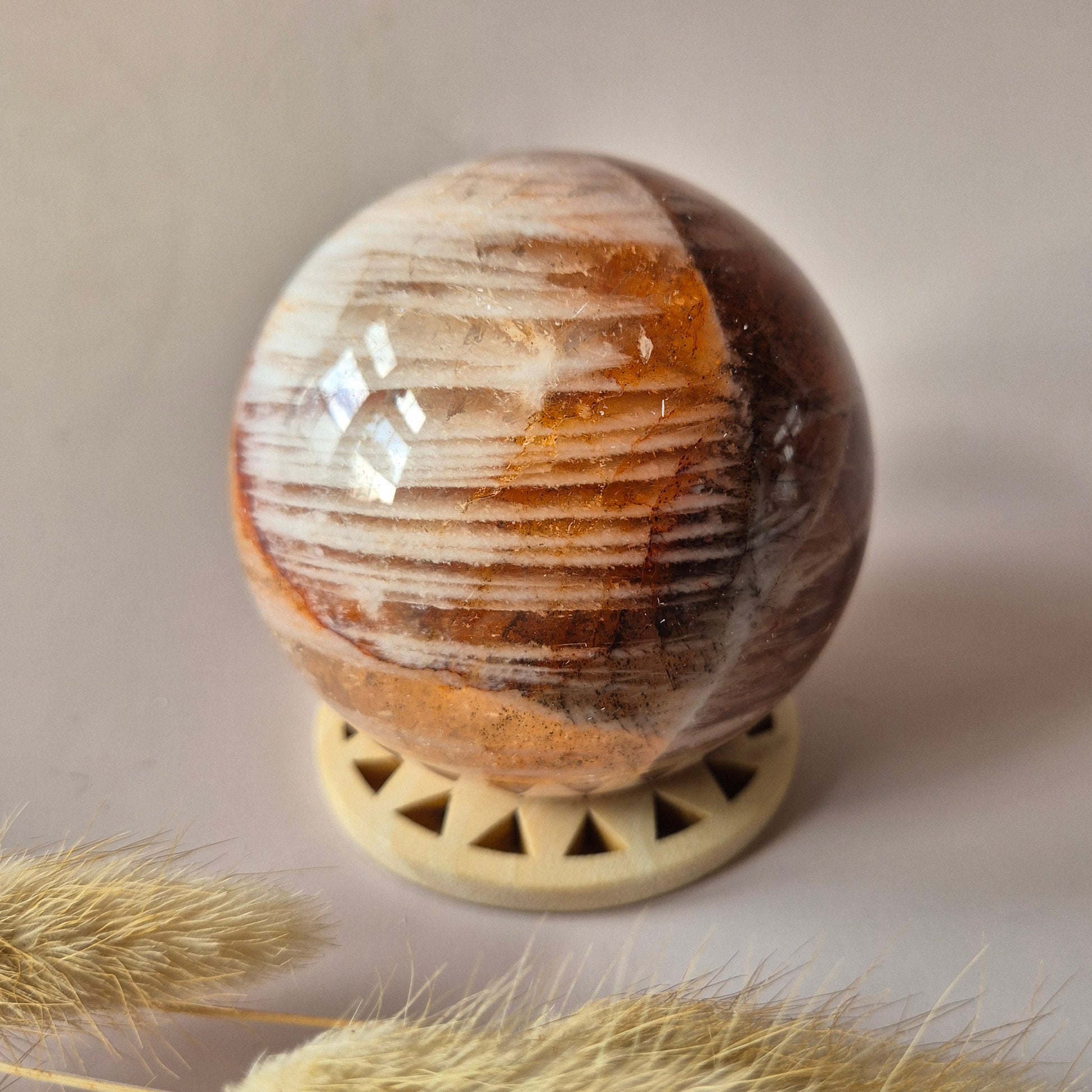 Deze bol is niet alleen prachtig om te zien, maar ook een krachtig hulpmiddel tijdens meditatie, healing sessies of als energetische aanvulling in je ruimte. Of je nu kiest voor een intens donkerrode variant of een lichtere rood-witte mix – elk stuk is uniek, met zorg geselecteerd en straalt natuurlijke schoonheid uit.