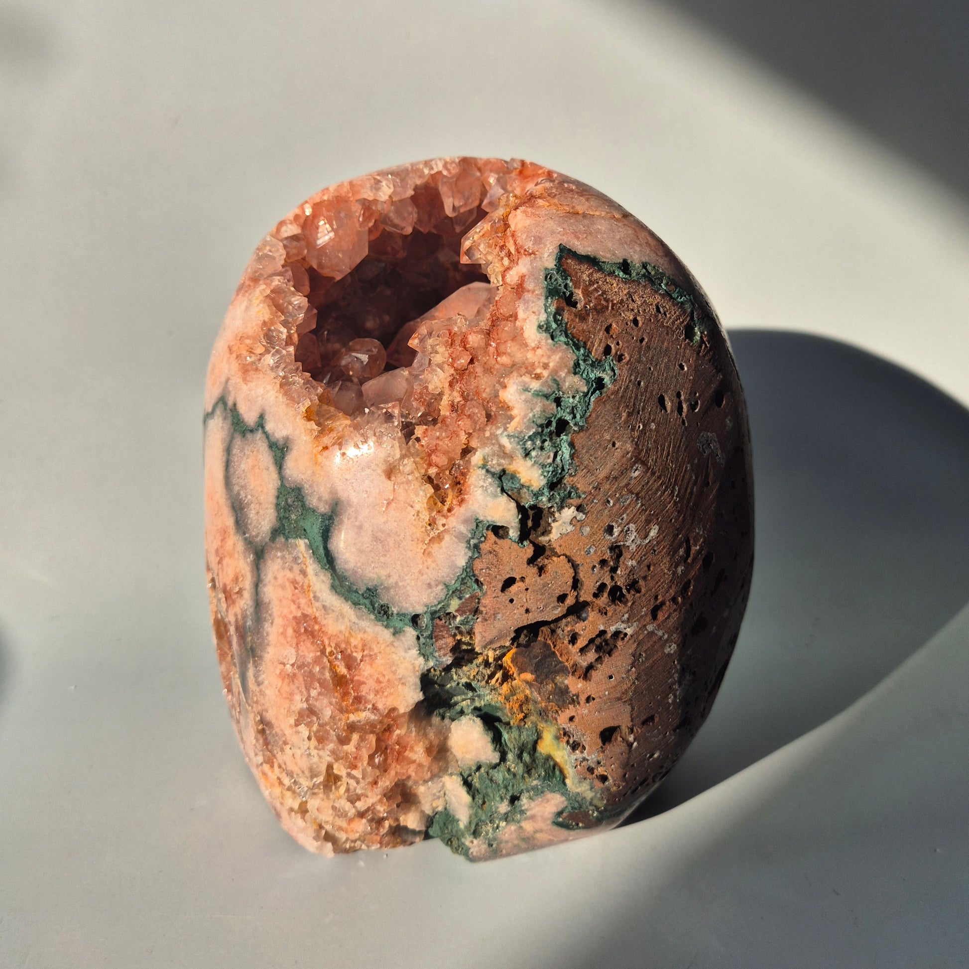 Gebruikstip: plaats deze geode in de slaapkamer of meditatiehoek om een kalme, liefdevolle energie te verspreiden.